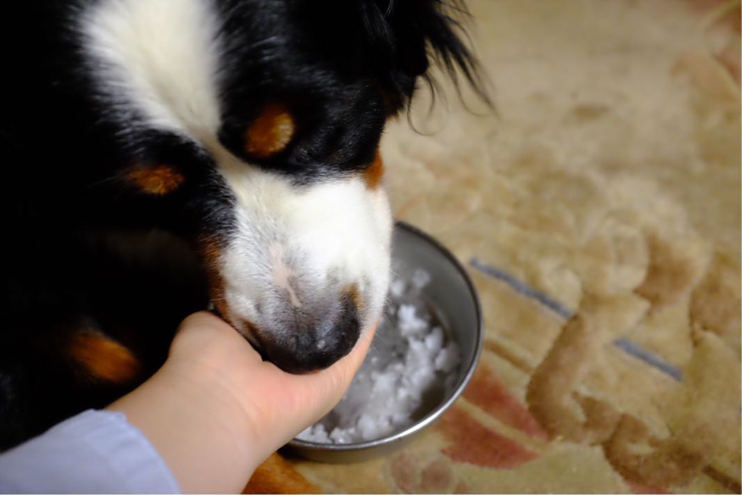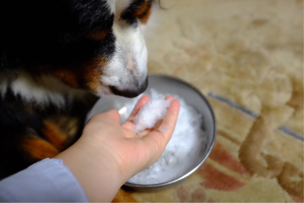 仕方がないので、かき氷を軽くキュッと握って氷だんご。
