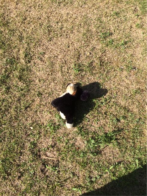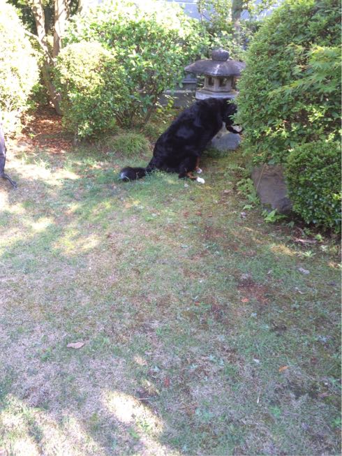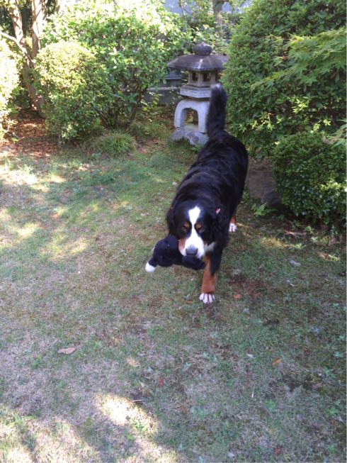 今日のお供はバーニーズのぬいぐるみ。