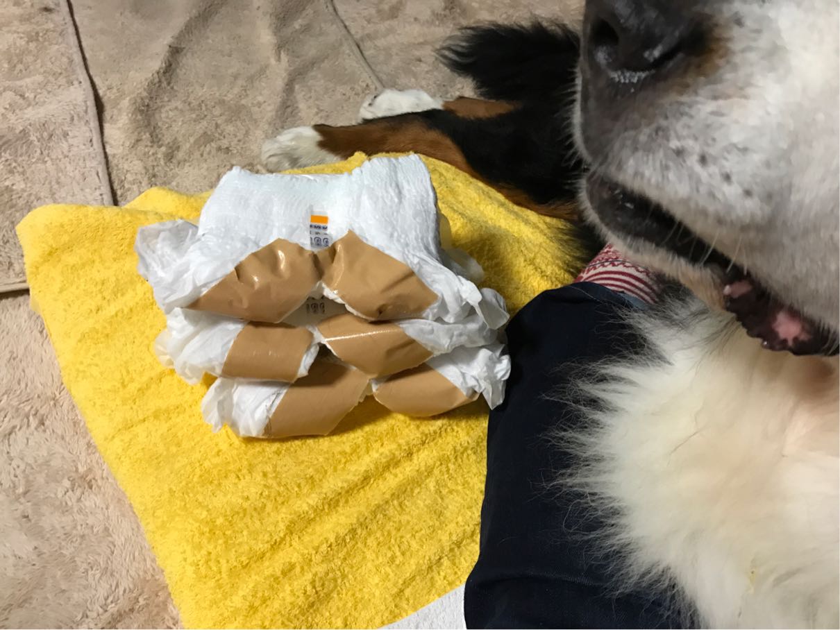 昨日からおもらしが始まったため、おむつ作り。