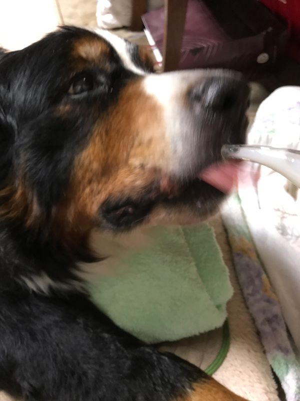 母から、今朝、エリザベスさんの顔が上がらずミルクが飲めなかった旨の