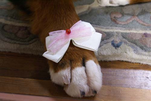シシィのリボンはいつも普通サイズの物なのでも少し大きくても・・・なんて思ったりもしていたんです。今度、トリマーさんに聞いてみようかしら?