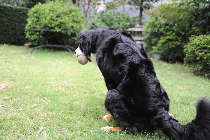 まずは、ボールくわえたまま、おトイレ中のエリザベス。