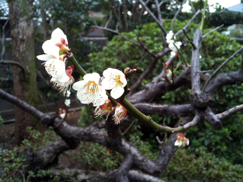 庭の梅の花が咲いています。