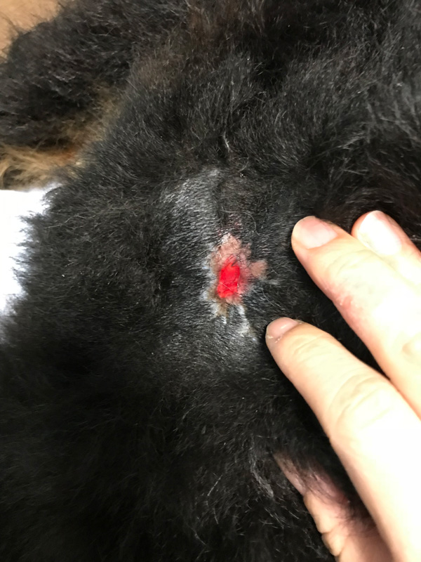 寝たきりの犬、乾かない。